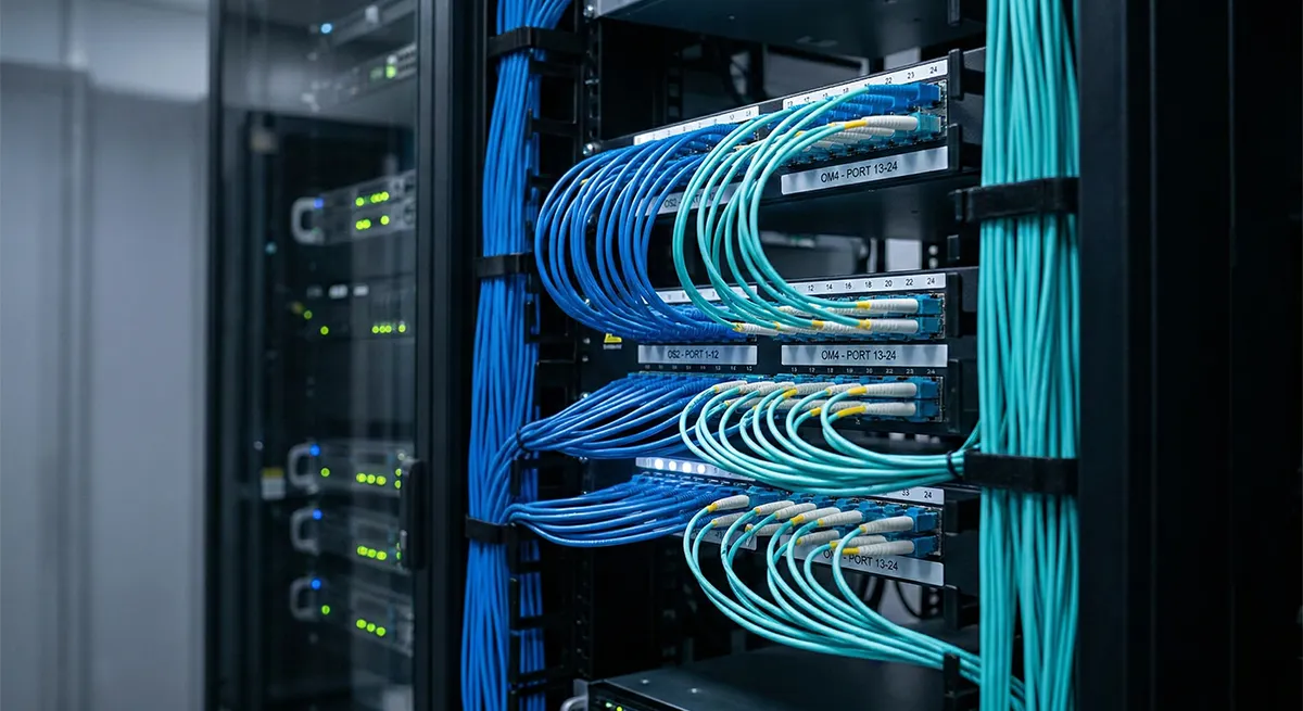 In aceste scenarii, conceptul de “Polaritate” devine vital. Un specialist trebuie sa stie exact daca are nevoie de un cablu de Tip A (Straight), Tip B (Crossed) sau Tip C (Pairs Flipped) pentru a asigura continuitatea corecta intre transmitator (Tx) si receptor (Rx). Pentru conexiunile de mare viteza pe distante scurte in interiorul salilor de servere, unde latimea de banda este prioritara, alegerea unui patchcord multimode OM4 permite atingerea unor performante superioare, fiind optimizat pentru tehnologiile de tip VCSEL la 850nm si permitand transmisii de 100G pe distante de pana la 100 metri.